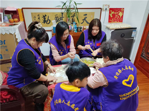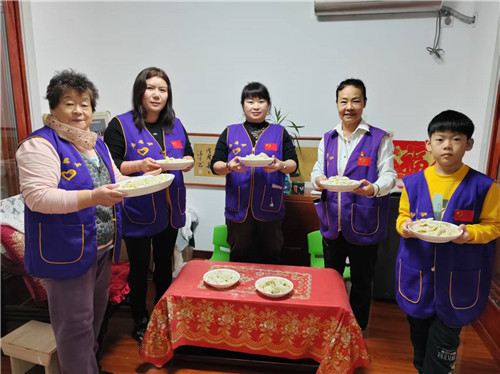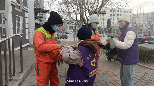 饺子包好后,随即下锅煮制、分盒打包。热气腾腾的饺子被仔细装好,志愿服务队的队员们分成几路,挨家挨户送往受助者家中。他们看望了向阳社区93岁、91岁、96岁的独居高龄老人,慰问了元宝社区高层的卧床患者、单亲低保家庭以及卧床的退伍军人,同时也将这份暖意送到了正在街头工作的环卫工人手中。每送出一份饺子,便送上一句真诚的问候与祝福。